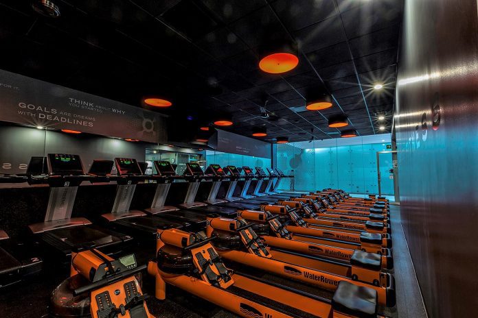 Los elementos naranjas, característicos del studio, son parte de los elementos que se utilizan para crear la energía en Orangetheory Fitness. Cuenta con pantallas; en las que se proyectan los resultados del monitor de cada participante; caminadoras, remadoras de agua y zona de piso. También encontrarás lockers, baños y regaderas para que puedas refrescarte después de hacer ejercicio.